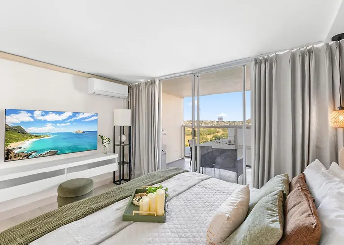 Con una piscina privada y una terraza, el Newly Renovated 1 Bdr For 6, Elegant Condo, Minutes To The Beach, Heart Of Waikiki Honolulu está situado en el distrito Waikiki, a 2 km del Monumento a Don Quijote de la Mancha. El Centro Royal Hawaiian se encuentra a 500 metros, mientras que el Acuario de Waikiki también está a 25 minutos a pie de este apartamento.